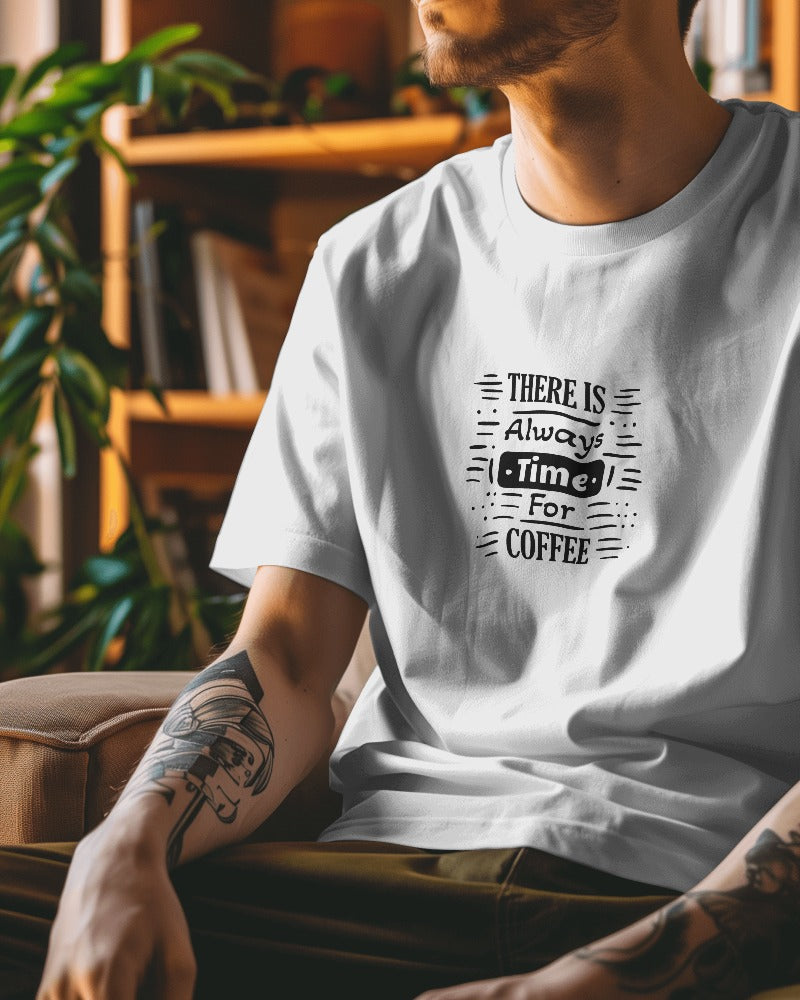 Coffee lovers, this one's for you! The Veratees "There Is Always Time For Coffee" Oversize T-shirt combines comfort with style, made from 240 GSM, 100% super-combed cotton. With a bio-washed and pre-shrunk finish, this unisex tee ensures a relaxed, regular fit for all. Featuring a lycra ribbed neck and double-stitched seams, it's perfect for any season. Available in sizes S, M, L, and XL, get yours today and enjoy premium quality and creative design with Veratees.